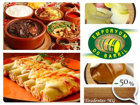 - 1 Feijoada* completa (feijão preto, paio, calabresa, lombinho, carne seca, bacon) + acompanhamento (arroz, torresmo, couve, laranja, farinha e costelinha) + 1 Caipirinha (cachaça, limão e açucar);