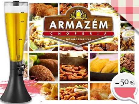 Oferta da Vez: Desconto de 50% na torre de 2L + porção a escolher ou prato a la carte individual, de R$44,80 por apenas R$22,40, no Armazém Choperia
