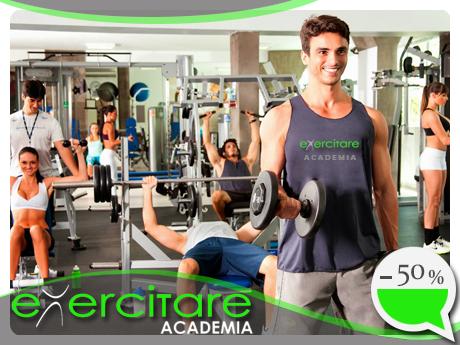 Oferta da Vez: 50% de desconto em 3 mensalidades na Exercitare Academia + Matrícula + Avaliação Física. De R$250,00 por apenas R$125,00 em até 10x no cartão de crédito*